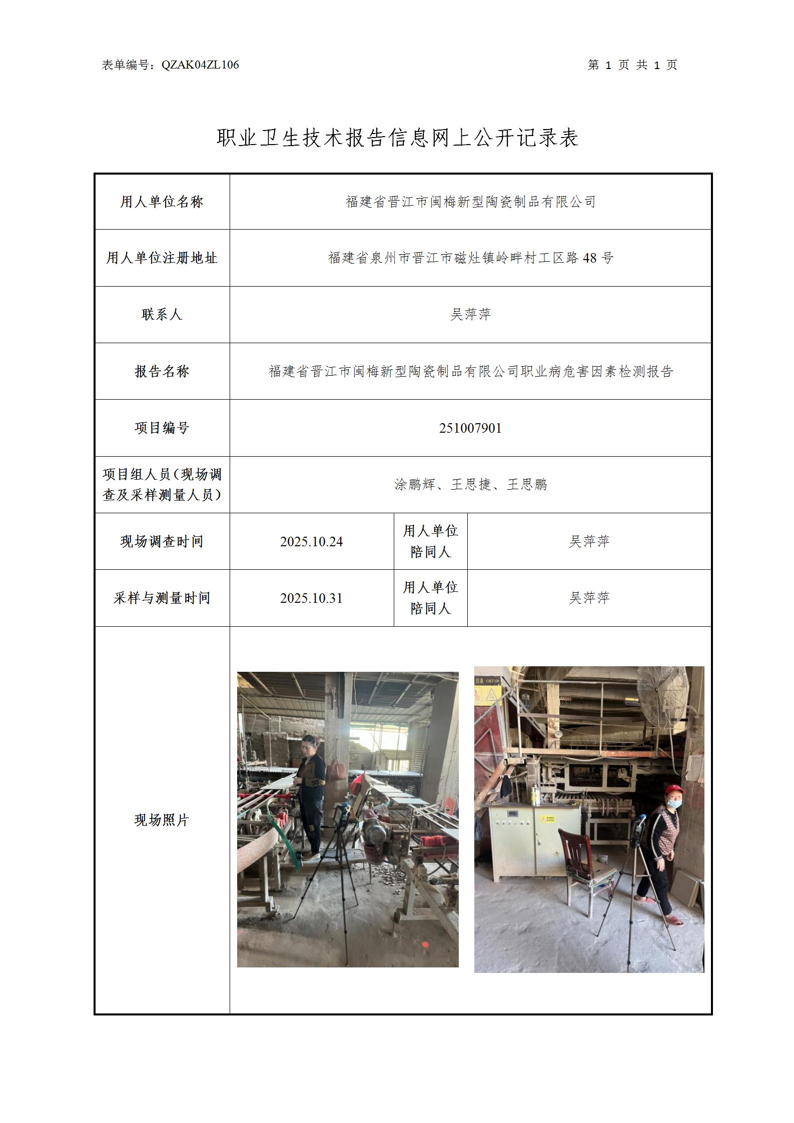福建省晋江市闽梅新型陶瓷制品有限公司