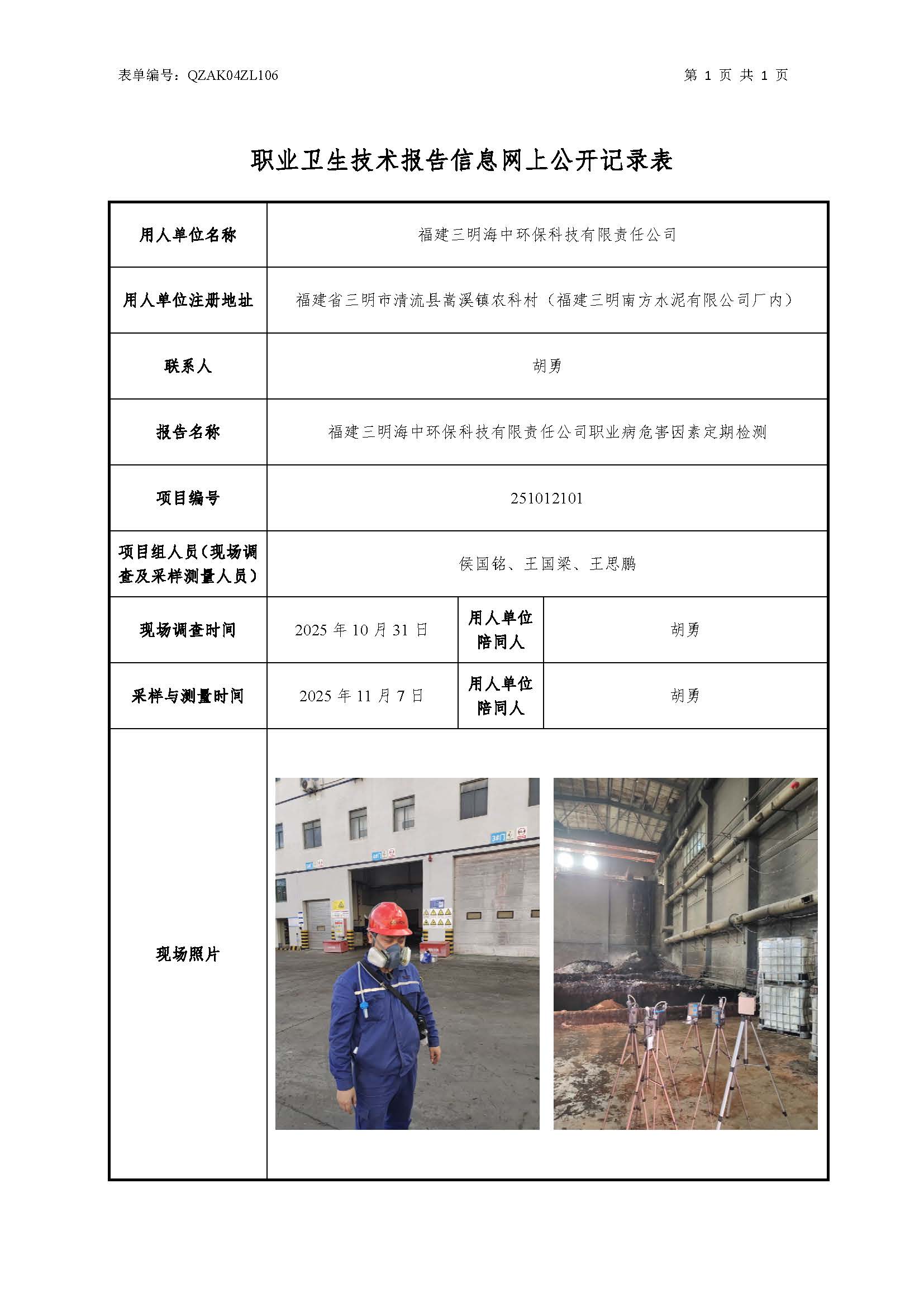 福建三明海中环保科技有限责任公司